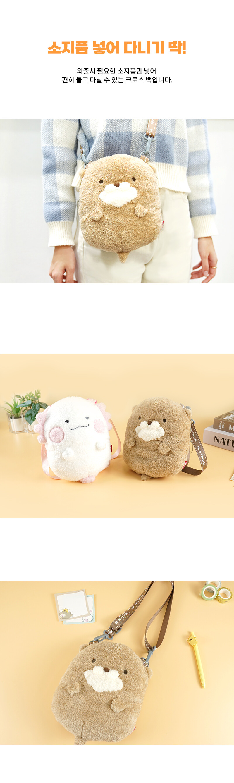 플러시프렌즈 보들보들 크로스백 수달 가오리 우파루파
