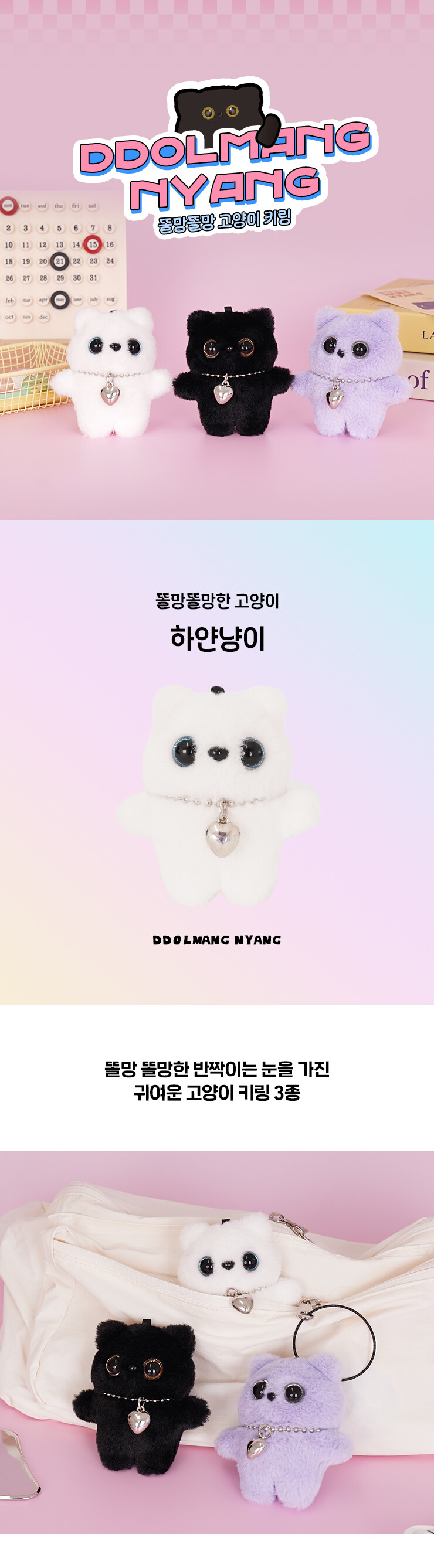 플러시플러시 힙즈 똘망냥이 키링 화이트